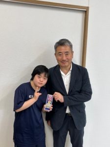 その後、栗原理事長にもご報告し「頑張ったねぇ!」と何度も声を掛けてもらい満面の笑みがこぼれていました。