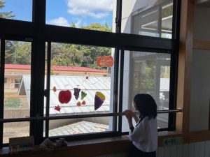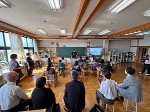 午前の部は韮崎市立穂坂小学校での学習会とキットパスアート体験です。
