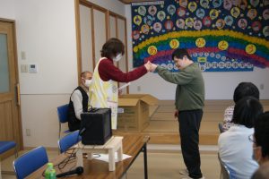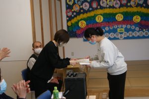 最後に施設長より「毎日仕事に元気に来るために、家族やグループホームの職員や世話人さんがいます。今日は帰ったら、感謝の気持ちを伝えてください」